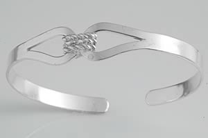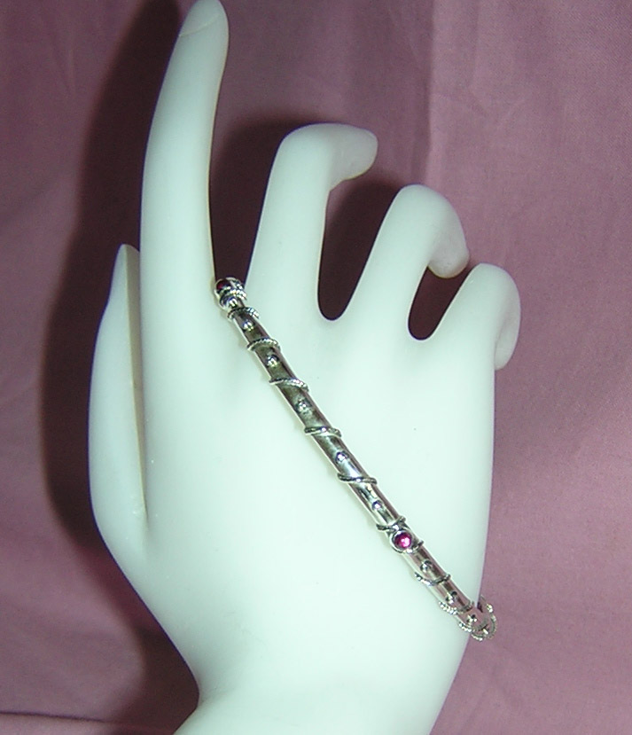 Sterling silver bangle bracelet with rope detail and faceted red garnet