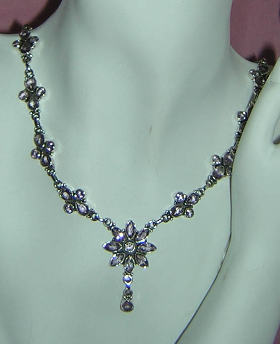 Lavender colored amethyst gemstones are faceted to catch every ray of light as you dance to the music. Set in sterling silver, this necklace is sure to be a favorite.
