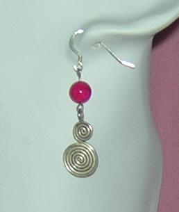 Hypnotic swirl made from pure Thai silver dangles from a fossil bead. On a sterling silver ear wire. Colors: hot pink (shown), purple, off-white. length: 2 inches limited edition $22.00 Temporarily unavailable online. To order, please email zevelyn@zevelyn.com