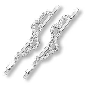 Two silver plated bobby pins with clear