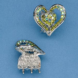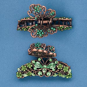 Large hair clip with green rhinestones