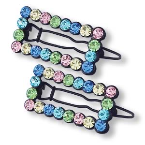 Two metal hair clips with colorful