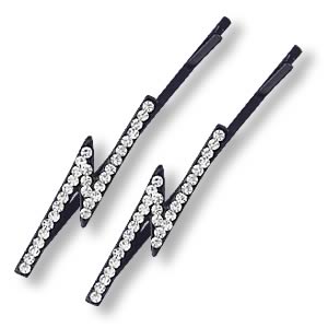 Two rhinestone studded metal bobby pins