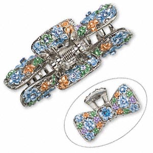 Large silver plated hair clip with blue