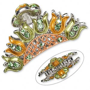 Silver plated hair clip with green